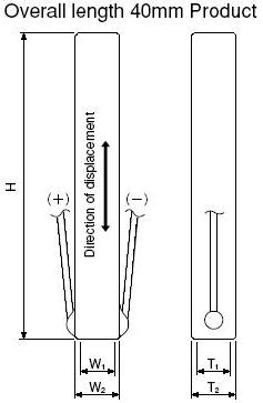 Model: AE0707D44H40DF T1 = 7±0.1 mm W1 = 7±0.1 mm H = 40±0.1 mm T2 = 7.4 mm max. W2 = 7.4 mm max. Wire length = 100mm |
